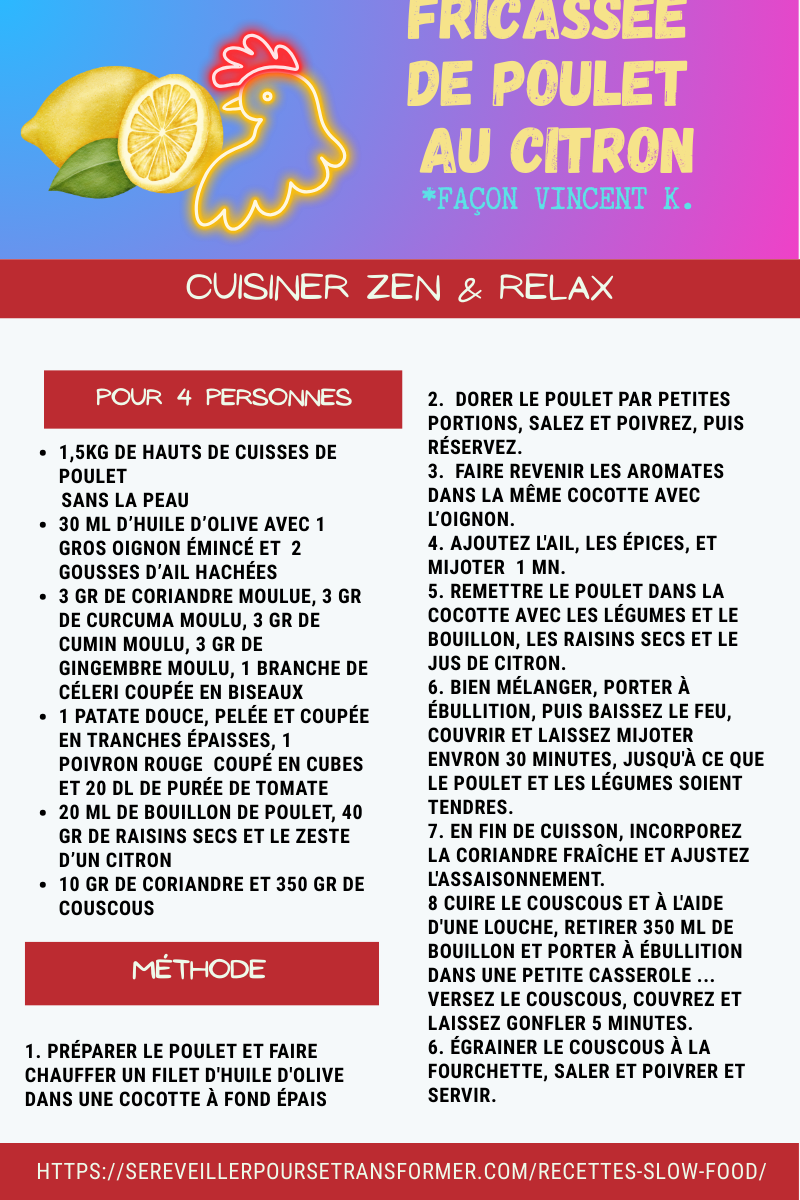 La prĂ©paration dâune fricassĂ©e de poulet au citron est une exploration intĂ©rieure.Â